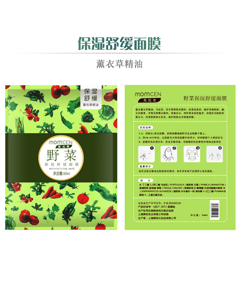 美优美(momcen)野菜保湿舒缓面膜30ml*6片