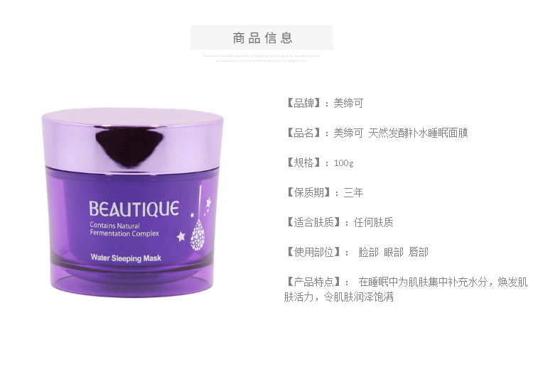 美缔可(BEAUTIQUE)天然发酵补水睡眠面膜100g