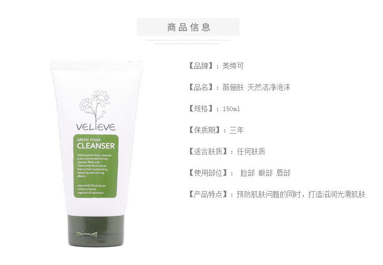 薇俪肤(VELIEVE)天然洁净泡沫130ml