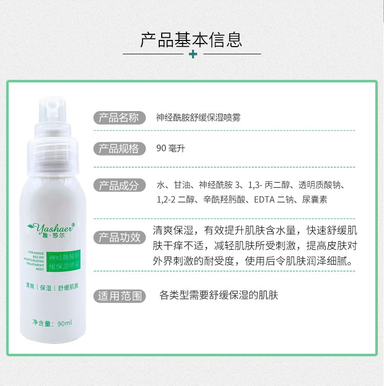 雅莎尔(yashaer)神经酰胺舒缓保湿喷雾90ml