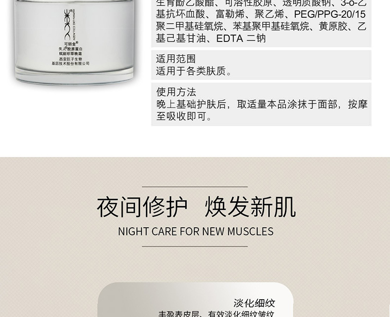 可丽金(COLLGENE)类人胶原蛋白赋能晚霜48g