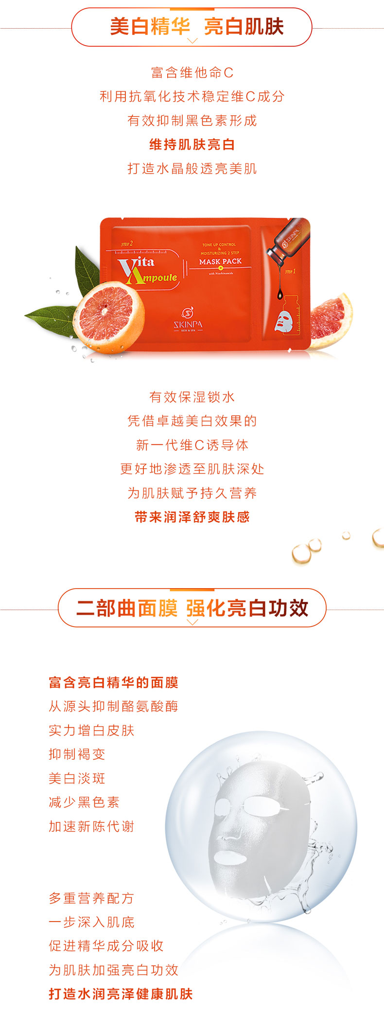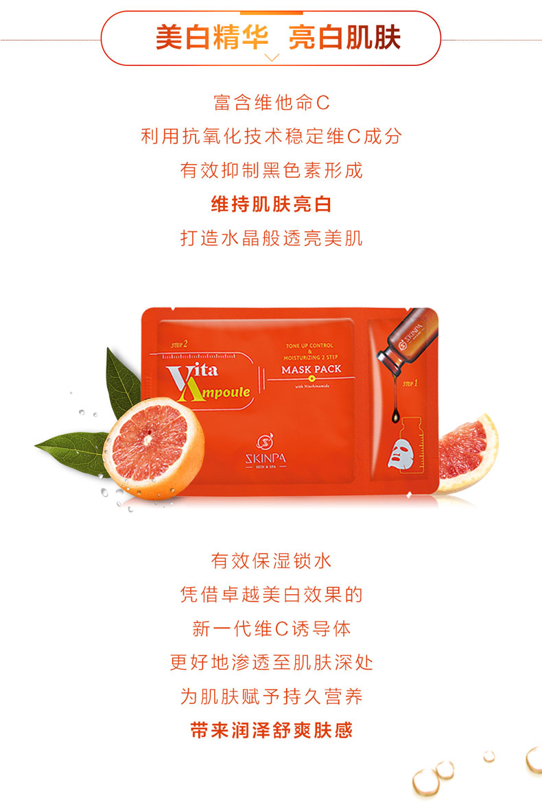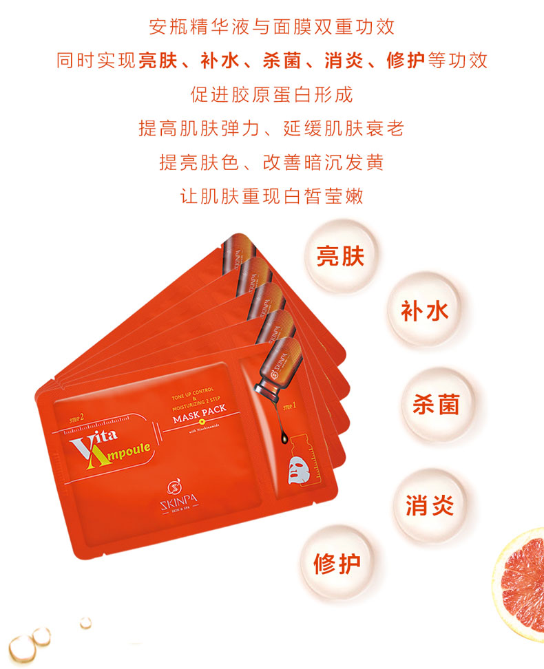 诗臻泊(SKINPA)莹润亮肤二部曲面膜(2ml+23ml)*5