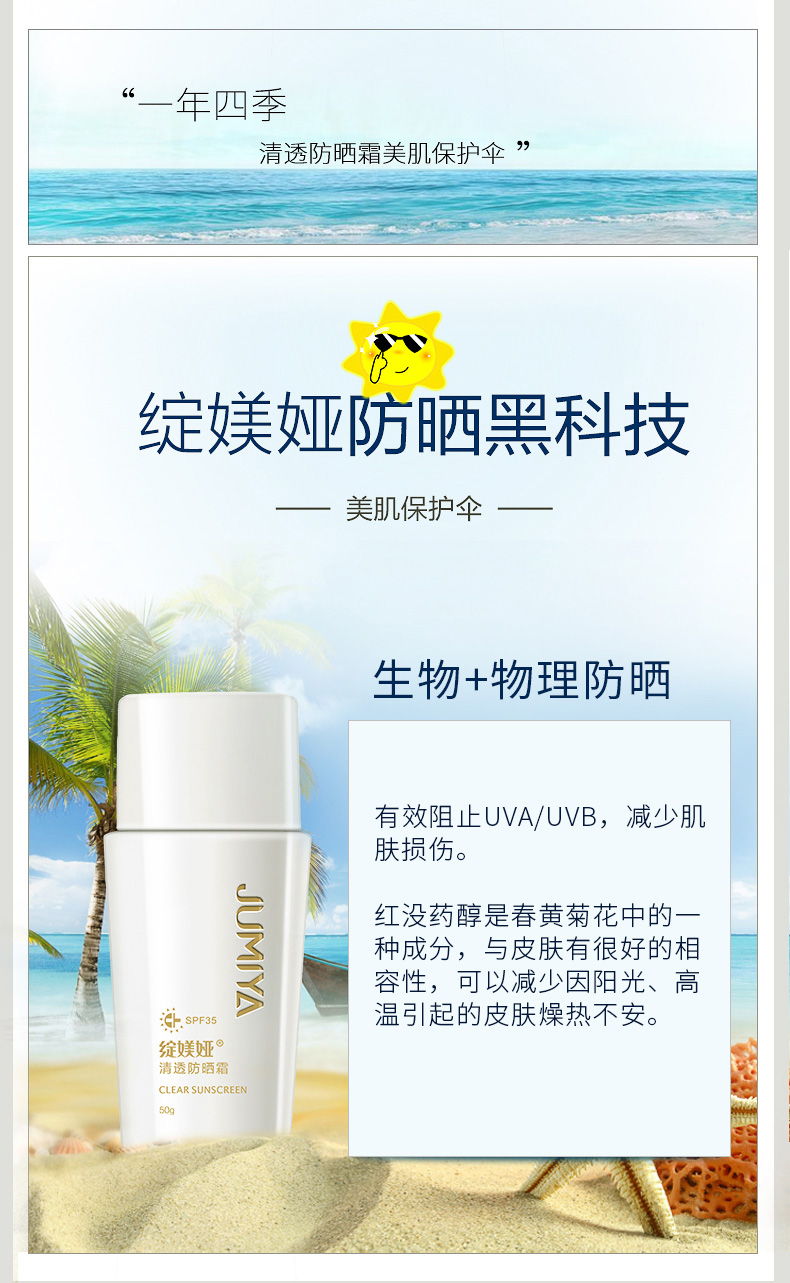 绽媄娅(JUMIYA)清透防晒霜50g清爽SPF35