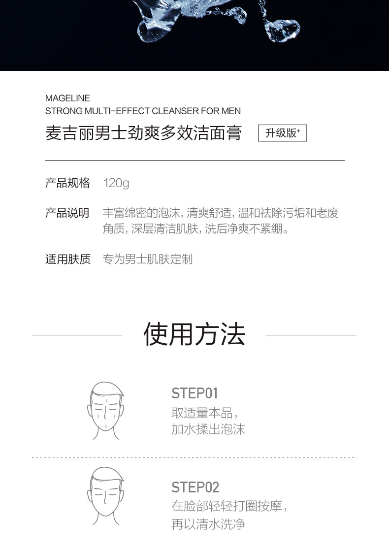 麦吉丽(Mageline)男士劲爽多效洁面膏120g