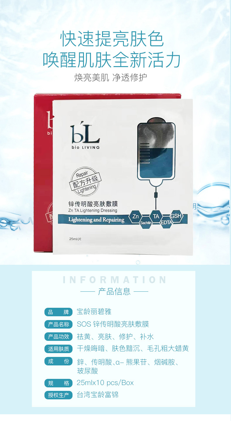宝龄丽碧雅(Bio_Living)SOS锌传明酸亮肤敷膜25ml*10片