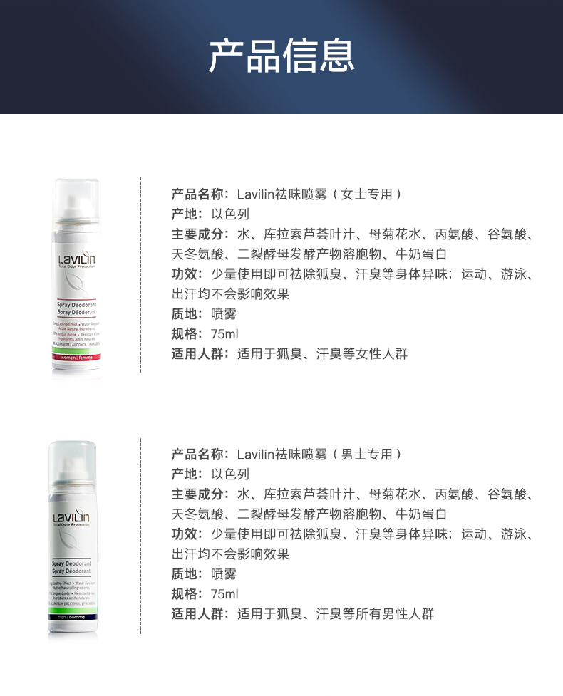 兰味莲Lavilin祛味喷雾(女士)