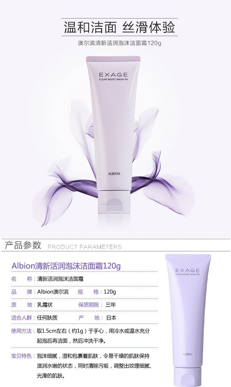 奥尔滨(Albion)奥碧虹清新活润泡沫洁面霜120g