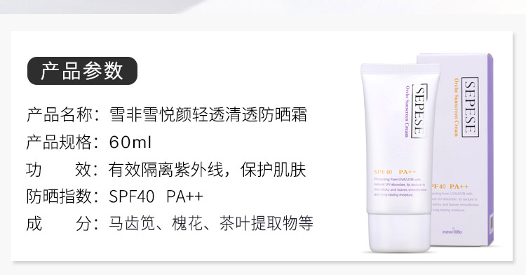 新生活(New_Life)雪非雪悦颜清透防晒霜60g