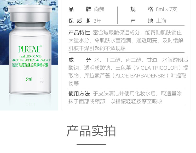 尚赫(Sun_hope)玻妃玻尿酸保湿柔肤精华素8ml×7支
