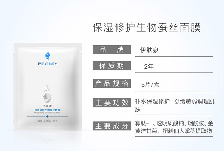 伊肤泉(EVE_CHARM)保湿修护生物蚕丝敷膜25g*5片/盒